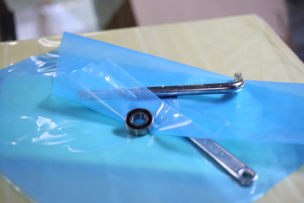 5、包裝空間---大型設備內襯包裝及密集排列產品的包裝時,建議配合其它VCI材料一起使用,如:防銹紙、防銹粉等