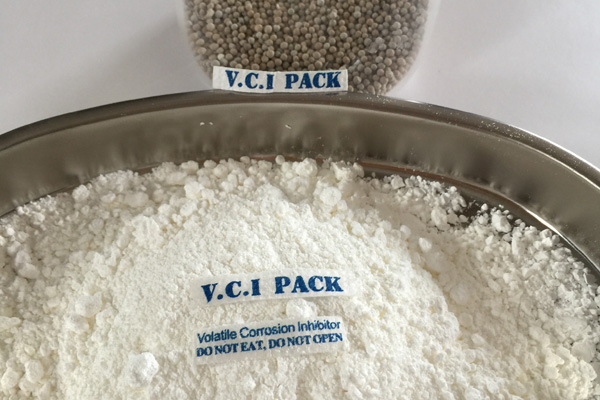 氣相防銹粉末多種特制的氣相緩蝕劑原料按一定配比均勻混合加工而成,具有水溶性,是一種新型的氣化性防銹材料。在密閉空間內(nèi),VCI經(jīng)氣化揮發(fā)到金屬的每個角落,吸附在金屬表面形成致密保護(hù)膜層從而起到防銹的作用